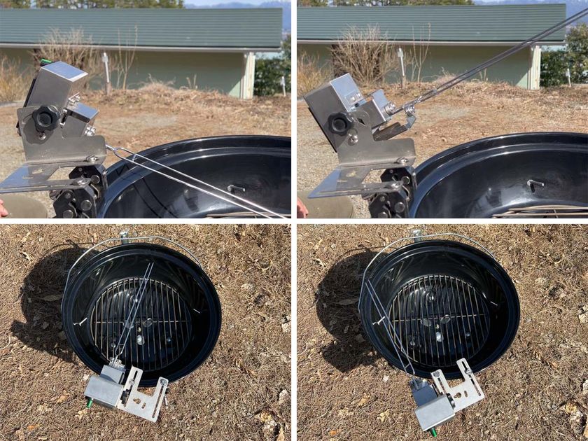 この首振り機構を使うことにより、火からの距離の調節や、位置の調整も簡単にできます。設置の自由度もアップします。例えば取付面が斜めになっている焚火台などにも取り付けることができます。