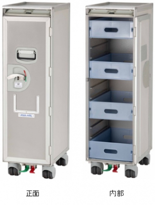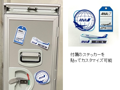 今回販売する機内搭載カートは、本体の軽量化に加え、カートの内側には、ドロワーが4つ付属しており、ご自宅のインテリアや収納グッズとしてお楽しみいただけます。さらに、ANAロゴや機影デザインが描かれたステッカーを特別セットにしてご提供します。ステッカーを貼って、ご自身でカスタマイズできる楽しさもある特別仕様となっています。