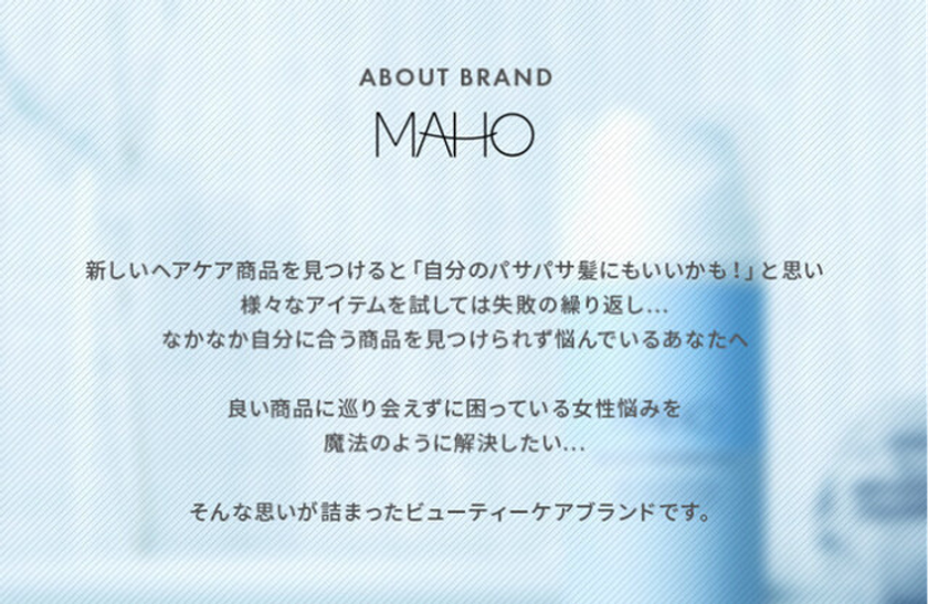 サロン専売品の総合商社であるHMC(ヘアーメッセージ)は、“すぐにわかる感動”を開発コンセプトに、ヘアケアのオリジナルブランド「MAHO(マホ)」の開発・販売を行ってきました。