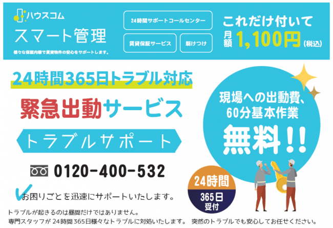 不動産賃貸仲介大手のハウスコム株式会社(所在地:東京都港区 代表取締役社長執行役員:田村 穂 東証一部 コード番号:3275)は、7月より、入居者様(賃借人)とオーナー様(賃貸人)の双方を一括でサポートする新サービス「ハウスコム スマート管理」の提供を開始いたしました。