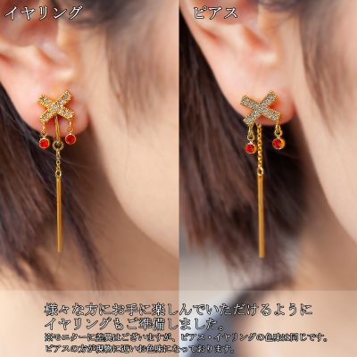ピアスにはキャッチ、イヤリングは本体に、こちらもぶら下がるバーがあり