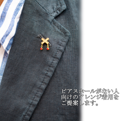 装着アレンジとしてジャケットのラペルにつけるとピンバッジのようになり、