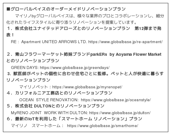 リノコレURL : https://www.globalbase.jp/renocolle/