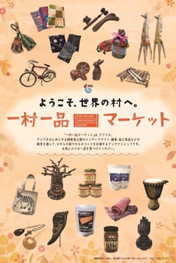 「一村一品マーケット」は日本貿易振興機構(ジェトロ)が経済産業省とともに推進する、アジア・アフリカ・大洋州などの開発途上国の産品を成田国際空港および関西国際空港にて紹介するアンテナショップです。開発途上国の産品を世界の玄関である空港で展示・販売することにより、その地域の特産品を育て、地域の活性化を図る開発途上国「一村一品」キャンペーンのコア活動となります。