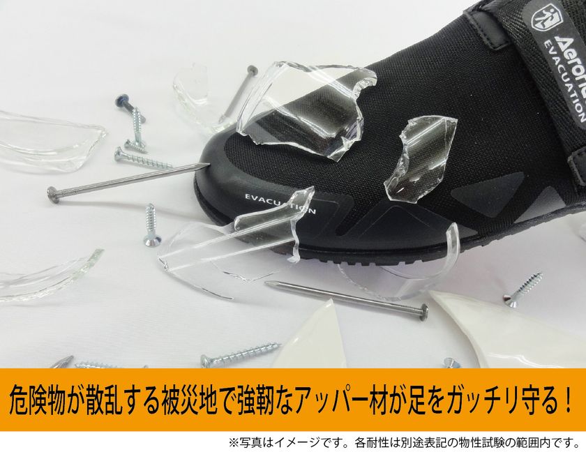 災害時に想定される危険から足を守る機能が満載。