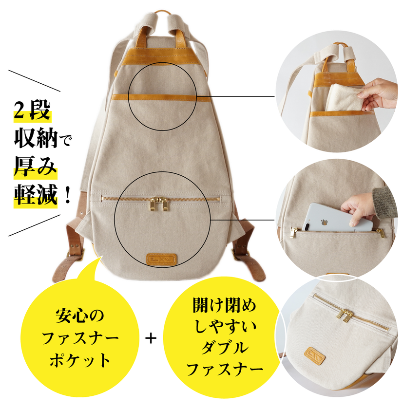 革工房「革のある暮らし」(所在地:千葉県千葉市、代表:澤田 治美)は、帆布作家「Hanp Bag Trocco」(所在地:茨城県つくばみらい市、代表:宮野 陽介)とコラボレーションし、「Hanp Bag Trocco」の個性的な“しずく型”が人気のリュック【ベリー】に革アレンジを加えて機能性もアップした、大人向けのスマートリュック【ベリーplus】を共同開発しました。