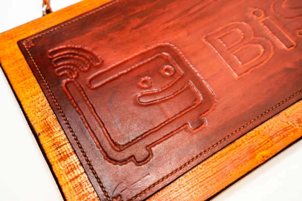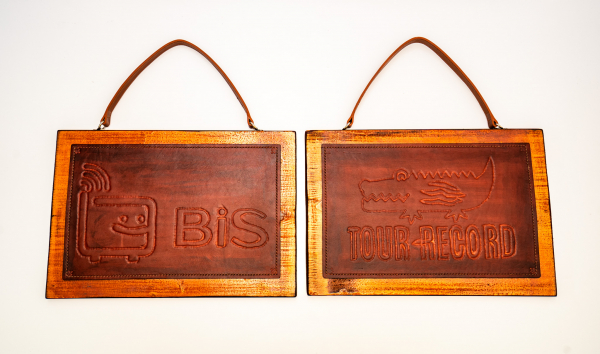 ・展示物: 革職人のご夫婦によるコーポレートロゴおよびブランドロゴのレザー製看板