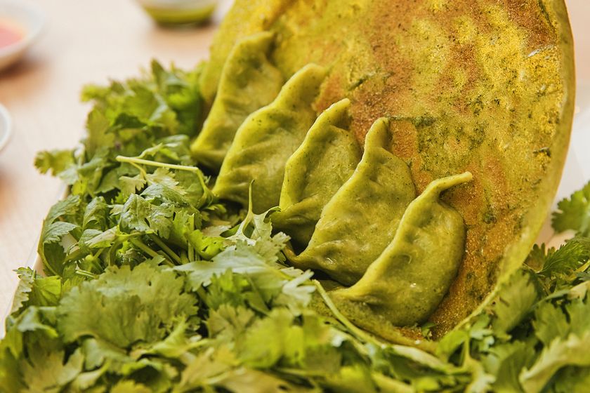 ●ジューシーかつ苦みのきいた餡にはニラの代わりにパクチーを使用。