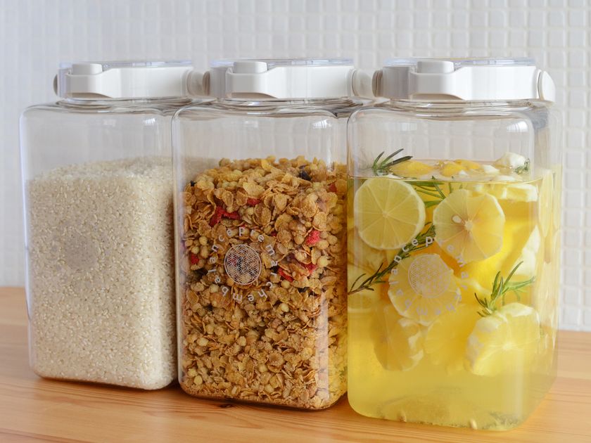 フタはワンタッチで開けられるので食品の出し入れが簡単です。また、パッキン付きでしっかり密封でき、湿気や酸化による食品の品質低下やにおい移りを防げます。シロップや果実酒以外にも、米や乾物、シリアル、お菓子などの保存にもおすすめ。パッキンは取り外してお手入れ可能です。
