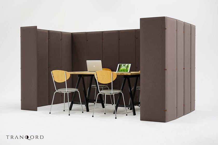 視線を遮るだけでなく、囲われた空間の内外の音をTRANQORDが吸音し和らげることで、オフィス内に簡単に集中空間を作ることが出来ます。またWEB会議の反響音対策や電話ブースとしての使い方も可能です。
