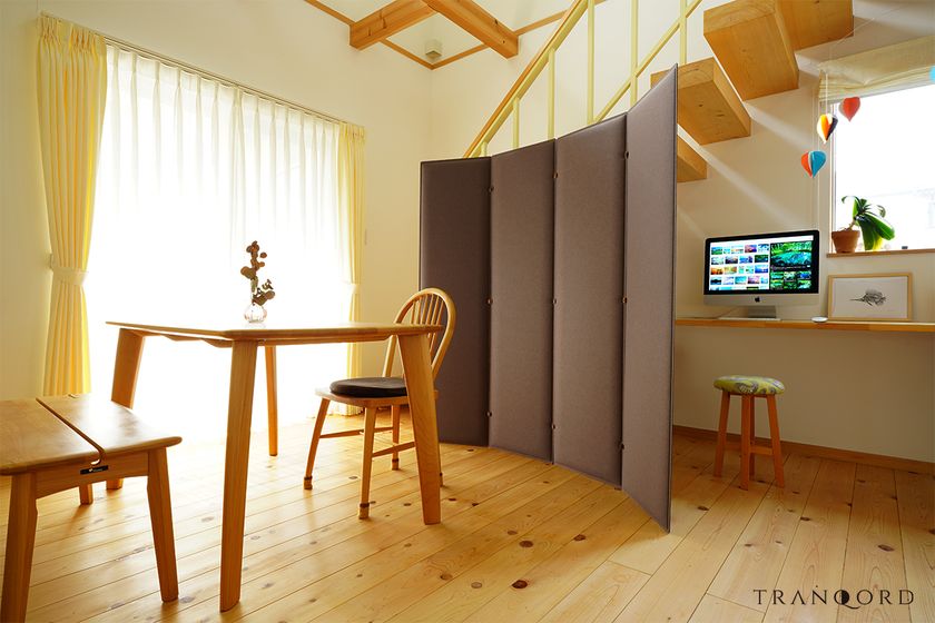 リビングのような住空間と作業スペースを仕切ることで、オンとオフの切り替えができ、集中しやすい空間に。在宅ワーク時のテレビ会議の背景隠しとしても使用可能です。