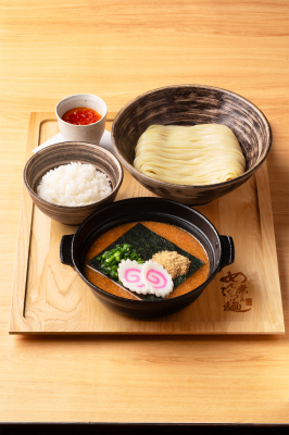コクのかたまりである明太子と10種類以上の野菜をふんだんに使用しています。素材の旨みを最大限に引き出す為にじっくりと煮こみ、濃厚なつけ汁に仕上げました。もちもちの太麺につぶつぶの明太子が絡み、はじけるように広がる旨み、他では味わえない素材を使用した当店自慢のつけ麺です。最後の一滴まで味わい尽くせるように、特製の辛味だれや割りスープなどもご用意しております。