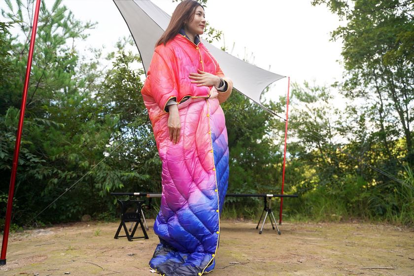 よくばりなあなたのために...!四方のスナップボタンを留めて、“ポンチョ”、“枕”や“シュラフ”として、そのままで“掛け布団”や“ブランケット”として様々なシーンで使える!