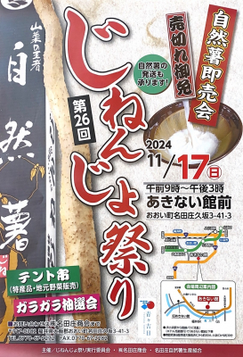 それに伴い、11月17日(日)にカニ祭りと、じねんじょ祭りが別会場ですが同時開催されますので是非、旬の食材をお楽しみにお越しください。