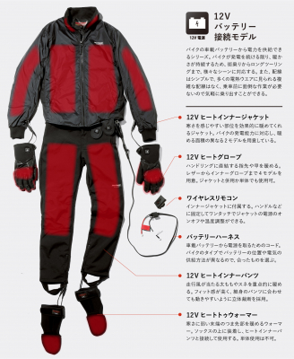 ベストは両胸・背中の3か所、グローブは甲部・指側面部にヒートシステムを設置、温度調節は3段階で可能となっています。電熱ウエアのパイオニアとして今まで以上の安全性、着心地、操作性の向上を見据え更なる進化を目指し、街乗りからアウトドアシーンなど様々なライフスタイルシーンで活躍してくれるでしょう。