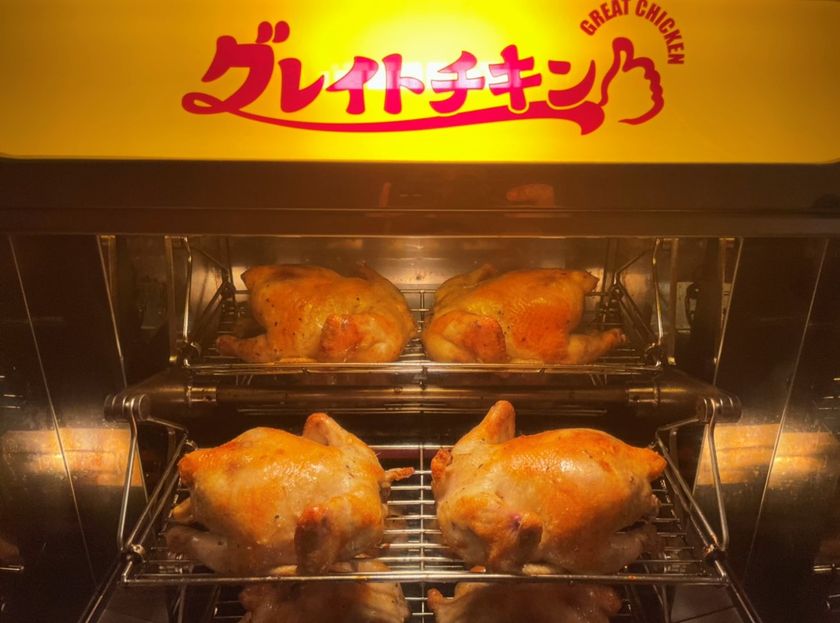 オープンから連日売り切れが続く「グレイトチキン」の丸焼きチキン
