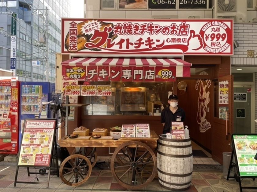 「炭火焼鳥とりだん」など32店舗の飲食店を展開する株式会社T-Style(所在地:大阪市中央区、代表取締役:田口 博之、以下「当社」)は、業界初(※)となる丸焼きチキン専門店のチェーン展開を行う新業態「グレイトチキン」の1号店を、大阪・心斎橋に7月21日(水)グランドオープンいたしました。丹念に丸焼きしたチキン丸ごと1匹を国内最安値(※)の999円で販売する圧倒的なバリューが瞬く間に話題となり、オープン初週の売上は予算をはるかに超える200万円オーバーを達成し、現在も連日ご用意している200匹が完売するなど、大変高い評価を頂いております。今後は年内に大阪市内で新店舗を出店し、来年からは当業態のパッケージ化を行い、順次全国展開を行ってまいります。(※当社調べ)