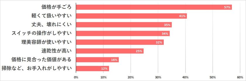 美容家電や調理家電などの開発及び製造を行うテスコム電機株式会社(本社:東京都品川区、代表取締役社長:楠野 寿也)は全国の美容室オーナー・店長505人に対して調査を行いました。その結果、テスコムのプロ用ドライヤーNobbyが美容室で使われているドライヤーブランドとして過去3回の調査同様、4回目のシェアNo.1※を獲得しました。また、本調査によって半数以上の美容師がコストパフォーマンスを意識してドライヤーを選んでいることがわかりました。