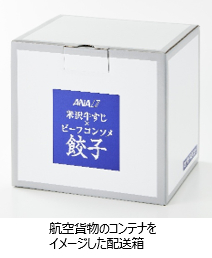 【5】パッケージ 袋のデザインはANAのコーポレートカラーのブルーを採用。さらに、航空貨物のコンテナをイメージしたシルバーラインが特徴の配送箱をご用意。ギフトにもぴったりです。