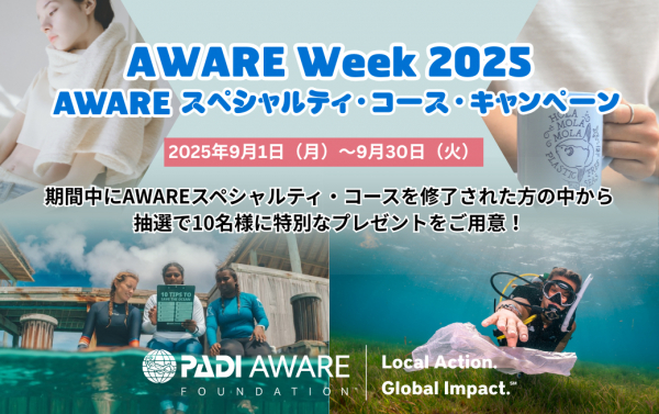 このAWARE Weekでは、ダイビングコミュニティ全体の保全パワーをさらに広げるため、ぜひご一緒ください!