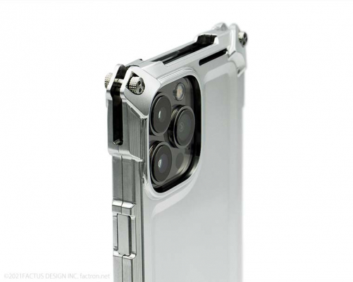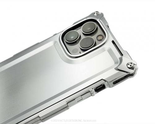 『Quattro HD』は、超々ジュラルミンを削り出したメタルジャケットシリーズです。iPhone3GSから続く本シリーズは、「FACTRON」の人気ナンバーワンシリーズとなっています。受注後に、一枚のジュラルミンの無垢材から時間をかけ一つ一つ削り出し、手作りで仕上げるオーダーメイド製品です。 同シリーズはデザインもその時代で変化を遂げてきましたが、今回の新製品は初心に帰り、初代3GSモデル 『Quattro for iPhone HD』をリファインしたデザインにリニューアルしました。