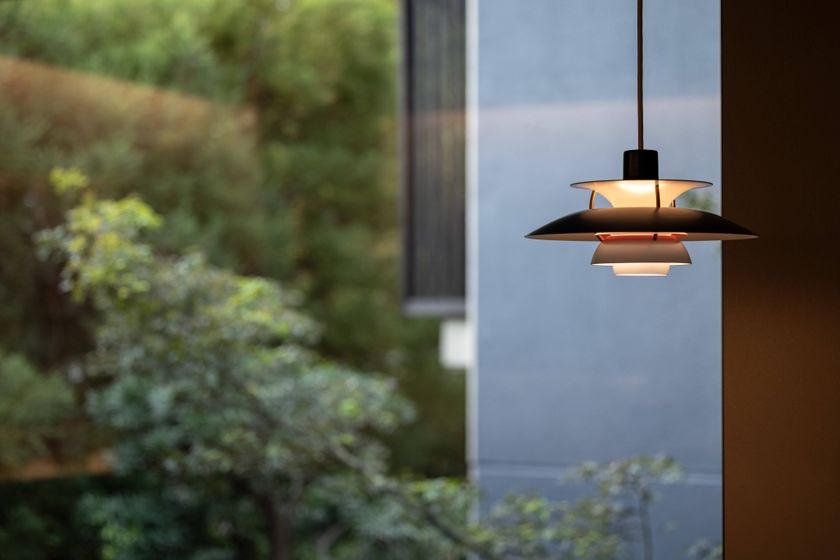 世界的に有名な建築家ザハ・ハディドが手がけた近未来型照明AVIA Pendant Lightを客室に