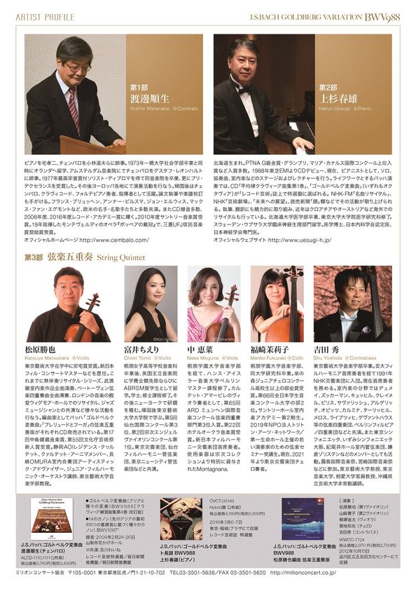 ゴルトベルク変奏曲で満たされる一日 公演チラシ裏