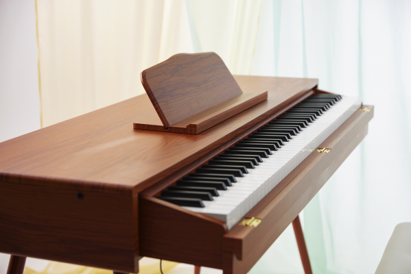 また、お洒落な見た目の上に電子ピアノの性能としても申し分なく、本格的なグランドピアノタッチ鍵盤で高品質なフランス製グランドピアノ音源を使用。初心者からプロまで納得の性能と音でピアノを楽しむことができる。