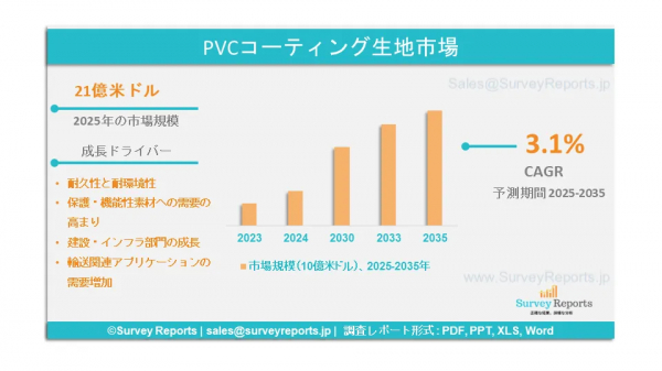 詳細レポートへのアクセスはこちら:https://www.surveyreports.jp/industry-analysis/pvc-coated-fabrics-market/1036042