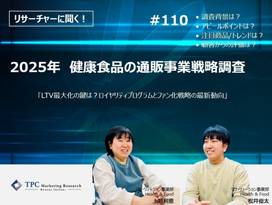 この程、TPCマーケティングリサーチ株式会社(本社=大阪市西区、代表取締役社長=松本竜馬)は、『2025年 健康食品の通販事業戦略調査』について、弊社リサーチャーの上野利恵、松井優太のインタビュー記事を2025年3月17日に公開したことをお知らせいたします。